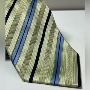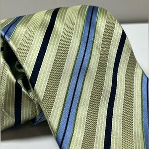 Ermenegildo Zegna 100% Silk Made in Italy Striped Multicolor Tie Blue and Green