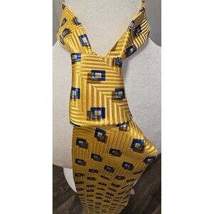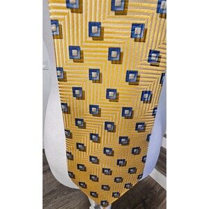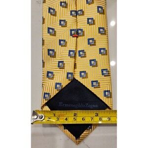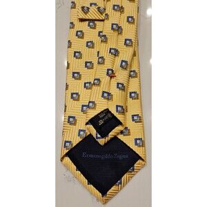 Ermenegildo Zegna 100% Silk Tie Yellow Tie with Blue Squares White Dots