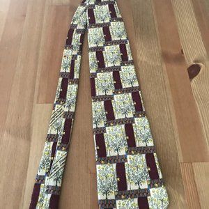 Designer Zegna 100% silk tie in yellow tree pattern with maroon, gold and blue colors. The logo is printed in various spots on the backside of the tie. Beautiful tie!