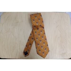 Ermenegildo Zegna 100% Silk Tie with Orange Geographic Print with Flowers NWOT