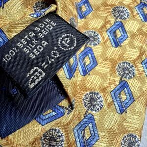 Ermenegildo Zegna 100% Silk Yellow Gold & Blue Diamond Shapes w/ Dandelions Tie