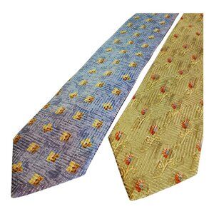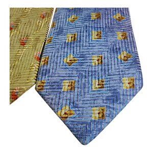 Ermenegildo Zegna 2 Luxury Silk Ties Elegant Floral &Geometric Pattern Blue Gold