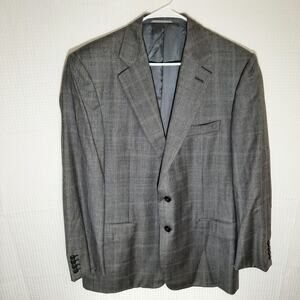 Search terms for visibility: Zegna blazer 44L, Super 100s wool jacket, luxury tailored sport coat, Swiss made blazer, Saks Fifth Avenue menswear, drop 7 silhouette, Ermenegildo Zegna suit jacket, grey plaid wool blazer