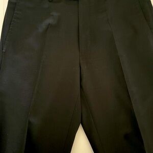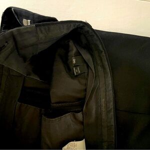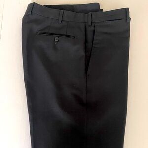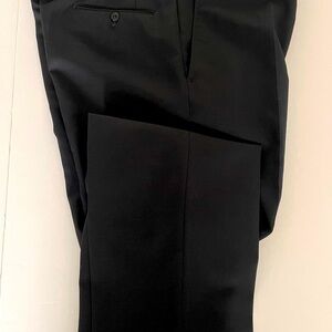 Sophisticated black pants with a sleek flat front design. Ideal for versatile styling. brand new never worn.