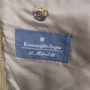 Ermenegildo Zegna Blazer Jacket 15 Milmil 15 Wool 46L Brown Check Ivy League