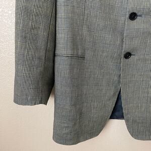 Green Plaid Linen Wool Mohair Blazer Ermenegildo Zegna US 44