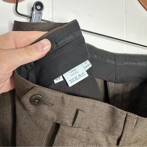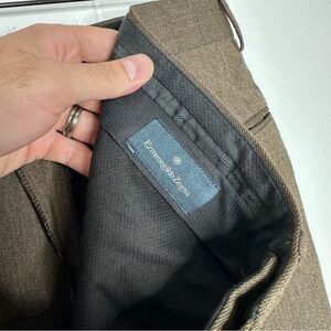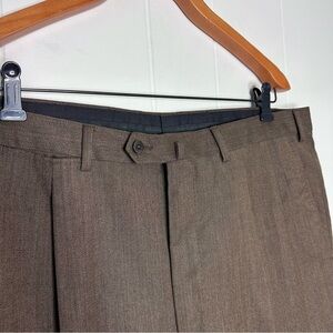 Ermenegildo Zegna Brown Pleated Cuffed Wool Pants/Trousers