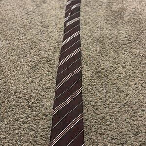 Elegant burgundy tie with white diagonal stripes. Perfect for formal occasions.