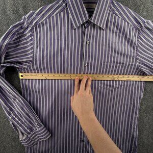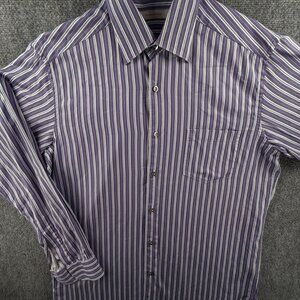 Ermenegildo Zegna Button Up Dress Shirt Men Large Striped Purple Italy Cotton