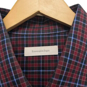 Ermenegildo Zegna Casual Button Down Shirt Red With Blue Plaid Italy Size XXL