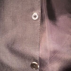 Absolutely stunning chocolate brown inside and out. This jacket is absolutely stunning and as far as I know a 1/1. I picked the fabric all around. Only defect is the 2 buttons to close the jacket broke in our move, I’m not sure how. But obviously this is a very small and easy to fix defect. Jacket was $2800 euros. So this is a steal at any price.
