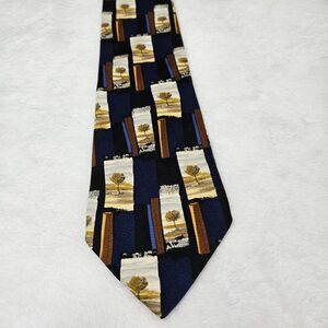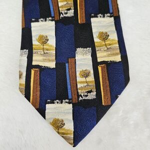 Ermenegildo Zegna Disegno Esclusivo Tree Nature Print Blue 100% Silk Tie Italy