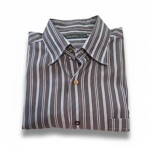 Ermenegildo Zegna Men’s XL Long Sleeve Button Down Dress Shirt - Brown & Blue Stripe