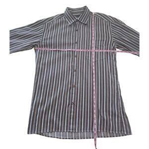 Ermenegildo Zegna Dress Shirt Men's XL Brown Blue Stripe 100% Cotton Business