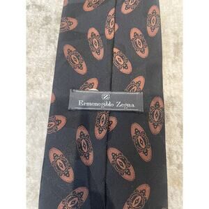 Ermenegildo Zegna Geometric Abstract Pattern Black Brown Neck Tie Silk 3.5”