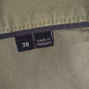 Pre-owned: No rips or tears. Has light fabric discoloration. See last 2 photos. Size 38. Measurements are: Waist 19" across, Inseam 35". Thanks for viewing!