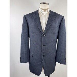 Ermenegildo Zegna Men Blazer Blue Houndstooth Sport Coat Wool Classic Jacket 44