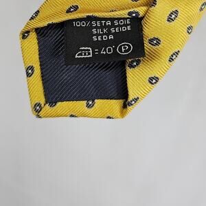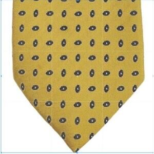 Elevate your style with this luxurious Ermenegildo Zegna Men’s Silk Tie. Crafted from 100% silk, this tie features a sophisticated yellow gold color with gray oval eye dots, making it a perfect addition to any formal or business attire.