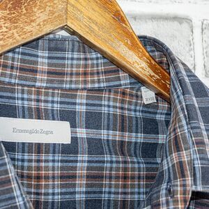 Ermenegildo Zegna Men's 2XB Button up Shirt Blue Plaid Cotton