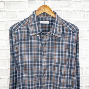Ermenegildo Zegna Big Man Size 2XB Button up Shirt Blue Plaid Cotton Long Sleeve