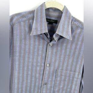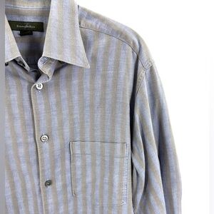 Ermenegildo Zegna Mens Button Down Shirt Size S Collared Long Sleeve Blue Stripe