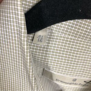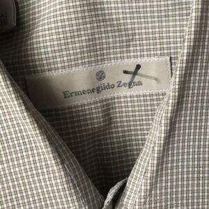 Ermenegildo Zegna Mens Button Up Dress Shirt Micro Plaid, One Pocket, Name Written On The Inside Of Shirt(Can’t be seen when worn) Otherwise In Great Preowned Condition. Men’s 41/16
