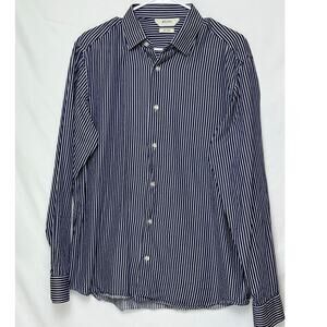 Ermenegildo Zegna Men’s Large Blue White Stripe Soft Touch Long Sleeve Shirt