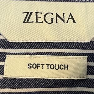 Elevate your wardrobe with this sophisticated Ermenegildo Zegna long sleeve shirt. Crafted with a soft touch fabric, this shirt features a stylish blue and white stripe pattern, perfect for adding a touch of elegance to any outfit. The shirt is in gently used condition and ready to wear.