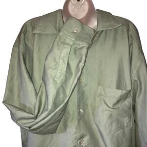 Classic mid-weight quiet luxury button down shirt with one breast pocket. Button from and sleeves, twill type material. Minty, light moss green color. Retails for well over $500