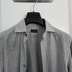 Ermenegildo Zegna Men’s Linen Blend Button-Down Shirt – Size S, Grey