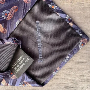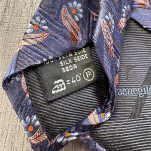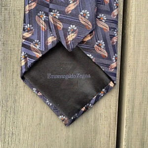 Ermenegildo Zegna Men’s Paisley Floral Navy Rose Gold Brown Neck Silk Tie 3.75”