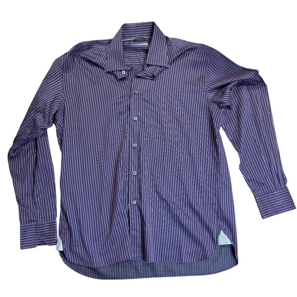 Ermenegildo Zegna Men’s Purple Striped 100% Cotton Long Sleeve Dress Shirt XL