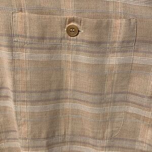 Ermenegildo Zegna Men’s Short Sleeve Button Up Cotton Plaid Tan Size Large