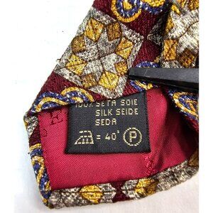 Ermenegildo Zegna Mens Silk Tie Burgundy Gold Blue Geometric Pattern 4" Wide