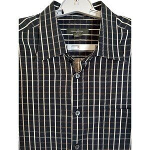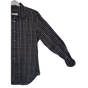Ermenegildo Zegna Mens Size XL Dress Shirt Black Striped 100% Cotton Luxury