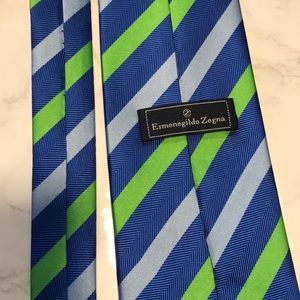 Ermenegildo Zegna Men's Stripe Silk Tie - Blue, Green and Silver. Handmade in Italy. Excellent Condition!