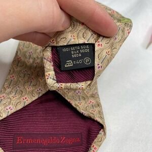 Ermenegildo Zegna Men's Tan Multi-colorful Tulip Floral 100% Silk Tie