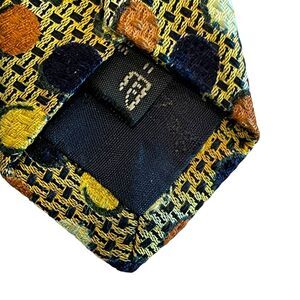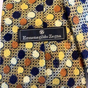 Ermenegildo Zegna Necktie Tie Mens Silk Gold with Circles Woven Made Italy 58"
