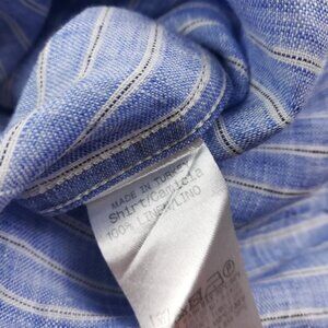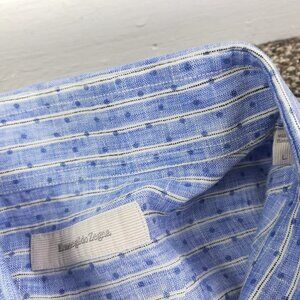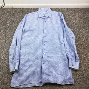 Ermenegildo Zegna Shirt Linen Polka Dot Striped Blue L/S Button Up Mens Large