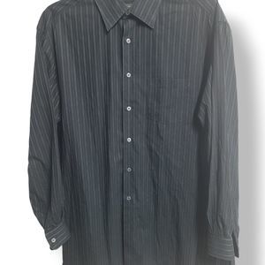 Ermenegildo Zegna Shirt Mens 2XT TALL Black Striped Button Down Long Sleeve