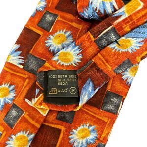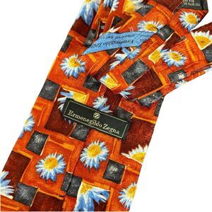 Ermenegildo Zegna Silk Exclusive Orange Blue Flower Box Tie Men's