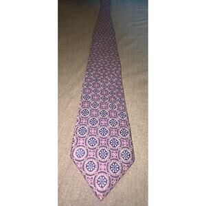 Ermenegildo Zegna Silk Necktie Burgundy Floral Purple Medallion Pattern