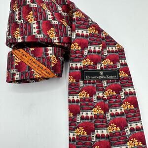 Ermenegildo Zegna Silk Necktie Red Orange Multi Print Designo Exclusiva