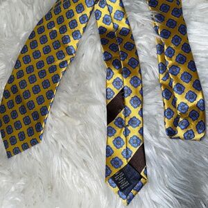 Ermenegildo Zegna Silk Tie Made in Italy yellow/blue diamond medallion print