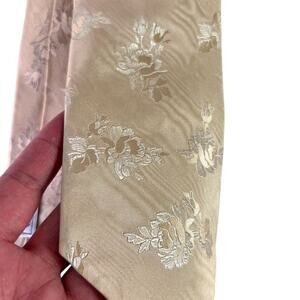 • Men’s Designer Ermenegildo Zegna Silk Tie Gold Floral Pattern