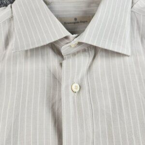 Ermenegildo Zegna Size 16 Striped Gray Long Sleeve Button Up Shirt Woven Cotton