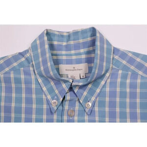 Ermenegildo Zegna Sky Blue/Aqua Checkered Cotton Dress-Casual Shirt~ M