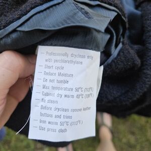 Black boucle knit sport coat from the Ermenegildo Zegna Soft line. Wool blend, with partial lining made from viscose. Three button closure for traditional blazer fit, with an additional button at the neck if you wanted to keep the wind out. Has padded shoulders. Patch pockets at the chest (1) and waist (2). No rear vent. In good used condition. See photos for fabric and care details.