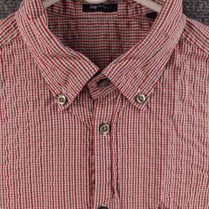 Ermenegildo Zegna Sport Green Red Check Button-Down Medium Shirt Mens Pocket