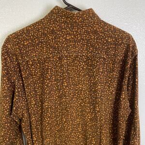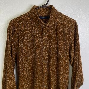 This listing is for a Zegna Sport Men's Corduroy Long Sleeve Button Up Shirt. Brown/Orange. Floral. Cotton. Made in Romania.